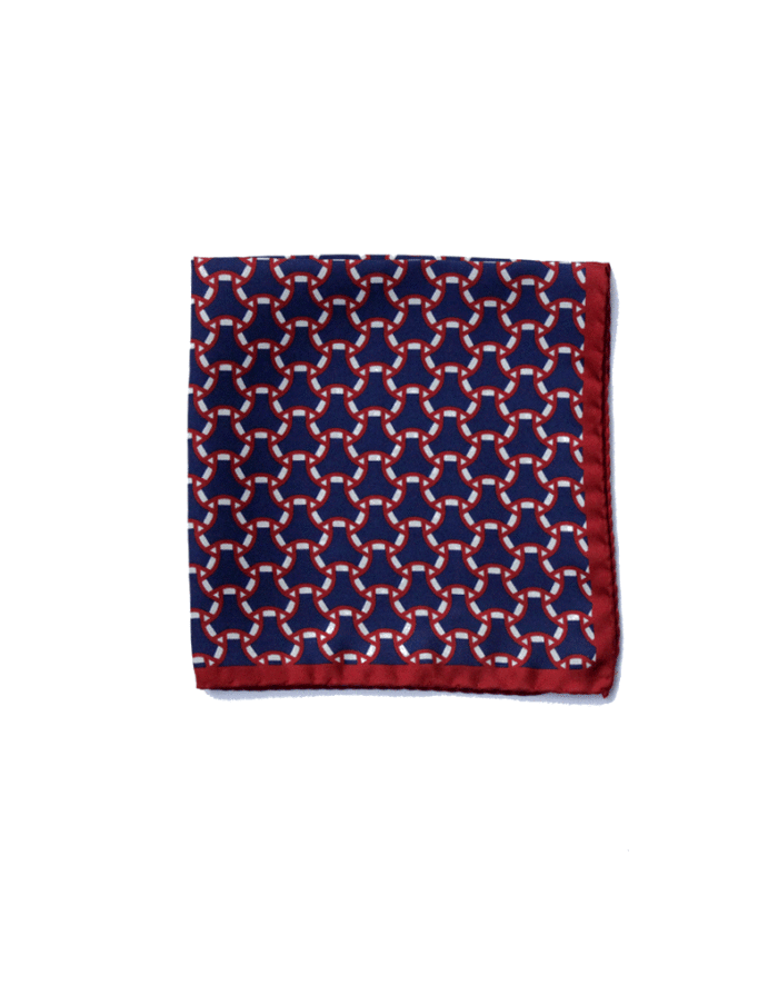 We have put some of our favorite colours together and the result is magic. The green base colour with sharp red geometric pattern with matching red piping on the borders certainly is bold and fresh. Cut out of twill silk, this Italian crafted pocket square will certainly is an eye catching piece of accessory with any outfit it pairs up.