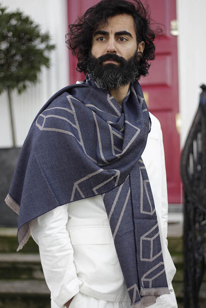 navy blue wool scarf for men