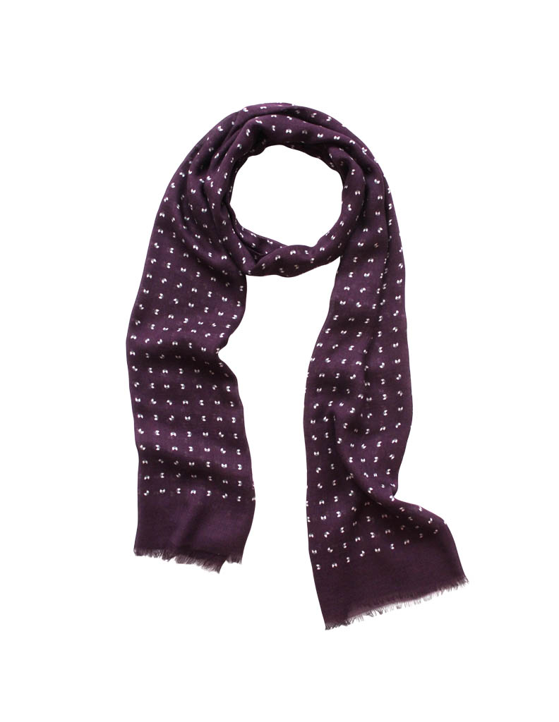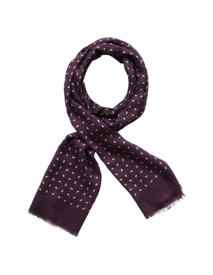 The Hotan, our depiction on polka dots boasts a timeless geometric print of dotted elements that they rotate throughout the print. Crafted in modal cashmere blend fabric, this super soft men’s scarf come in two colours, navy blue and burgundy. This light weight scarf with its geometric pattern is a perfect accessory for all-year-round and matches any plain colour outfit/suits. You can opt to achieve a casual look with it, wearing it with jeans and white, grey or navy top or accompany it with your formal grey or navy suit.