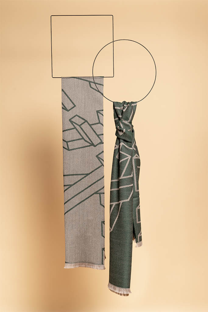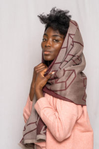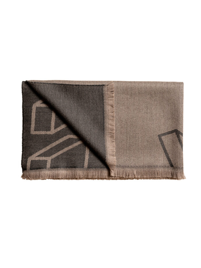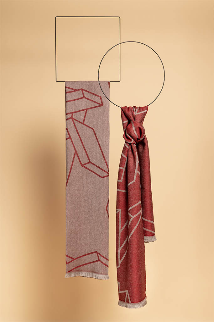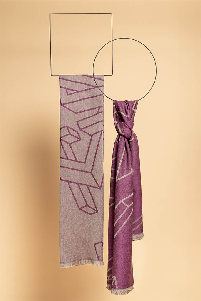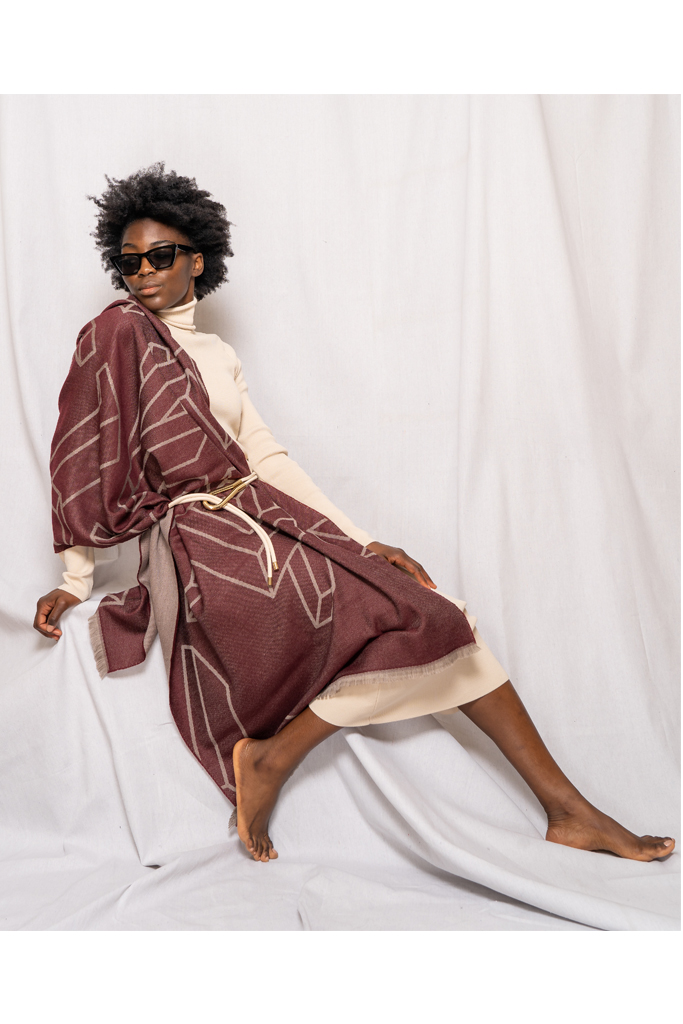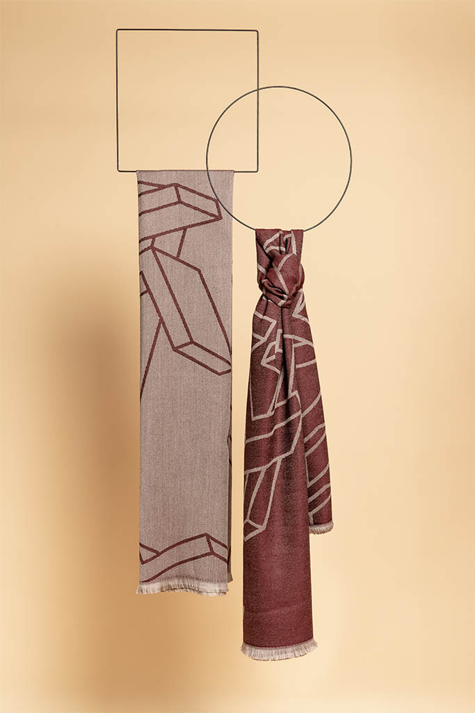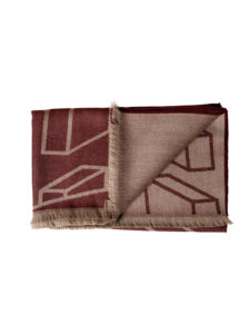 This shawl with its hues of maroon and taupe has a timeless and elegant look and crafted in Italy in pure wool in Jacquard structure. This double sided scarf gives you totally different look once reversed. One side is predominately in taupe colour and one side predominately in maroon. This scarf is definitely for the ones after understated elegance.