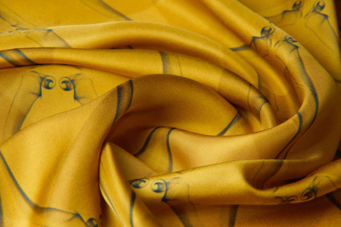 The Asra is a charming scarf with a casual flair. The organic motif is overlaid on shades of gold in check patterns. Crafted in twill silk, this scarf will add an instant flush of colour to your all-black look.